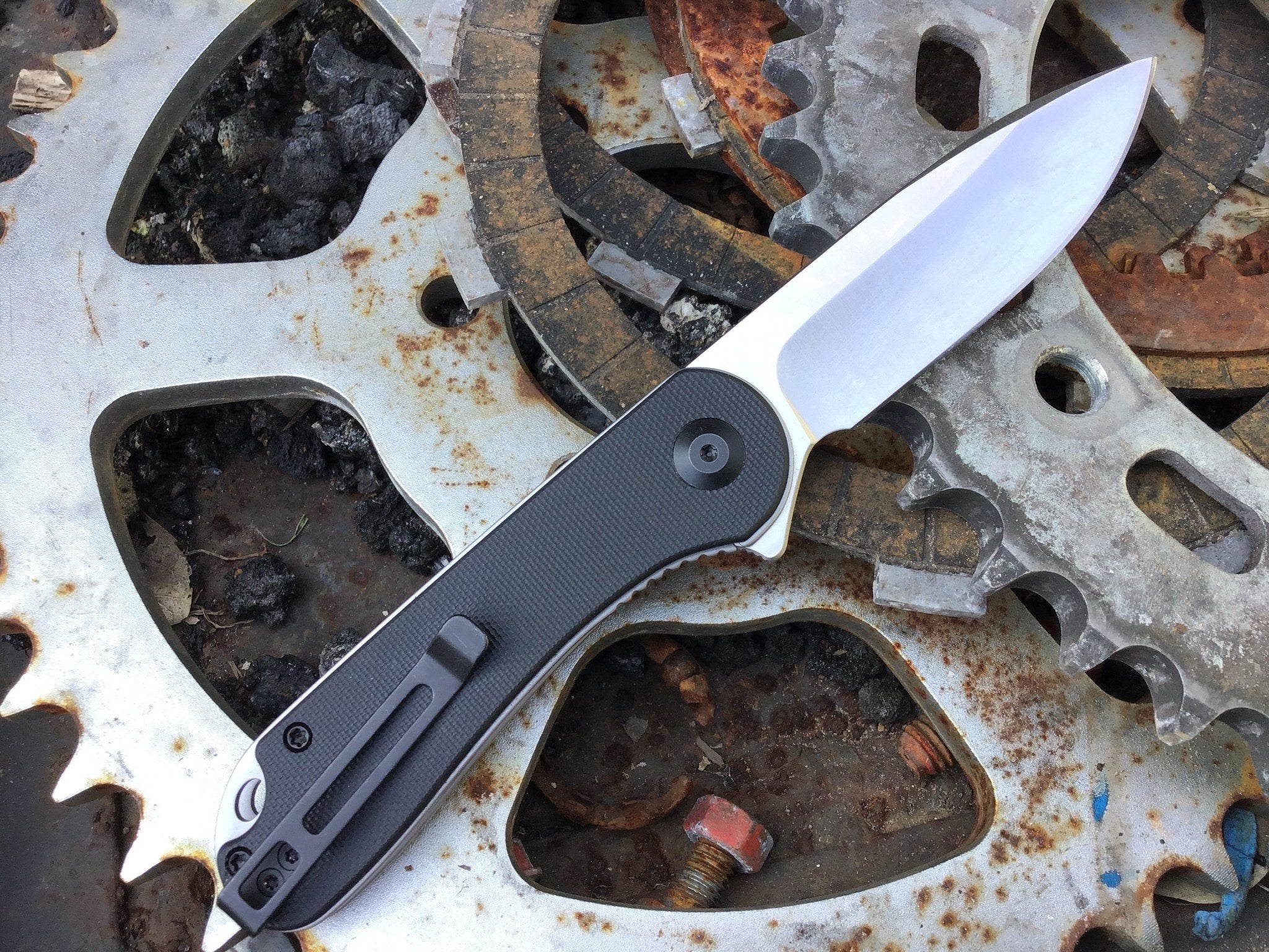 This CIVIVI Elementum features a black G-10 handle with satin finish D2 tool steel blade. It is topped off with a lanyard hole, deep-carry pocket clip, buttery-smooth flipper action, and a liner lock for solid lock up.