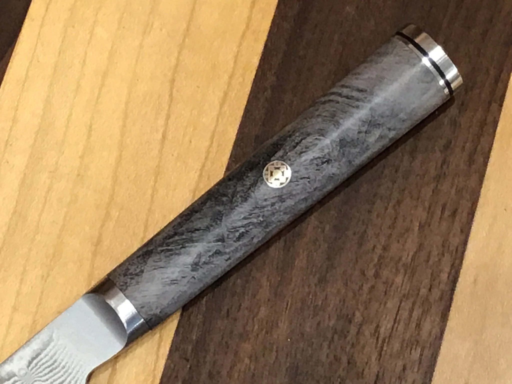 - Blade consists of 133 layers of steel, resulting in a floral damascus pattern